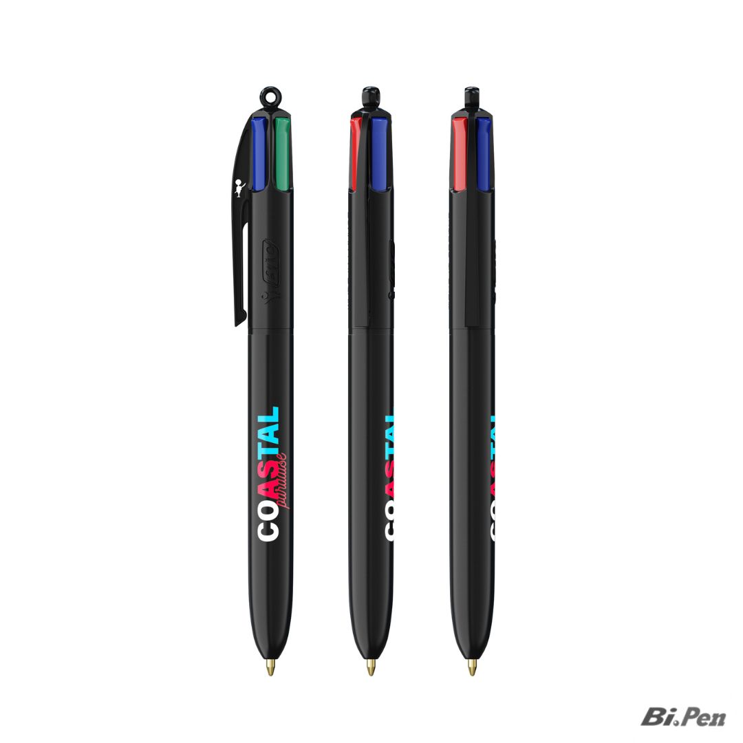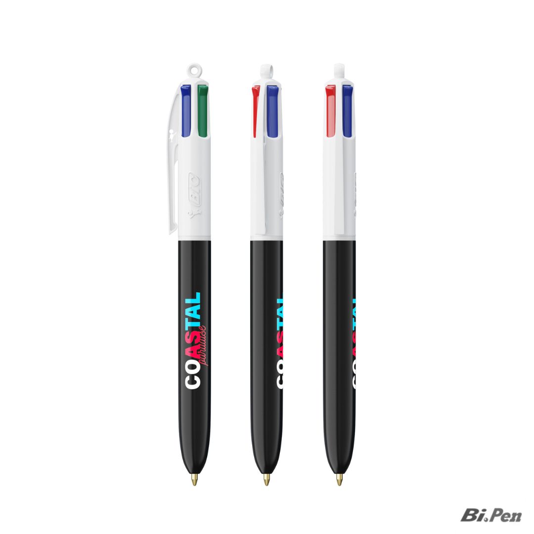 BIC 4 Colours ECO, l'icona del cambiamento. Con il fusto (barrel) al 98% in plastica riciclata proveniente da componenti auto, la BIC® 4 Colours® ECO è la soluzione per i settori Green Tech, Automotive e Istituzioni. Personalizzala grazie alla stampa serigrafica fino a 4 colori.