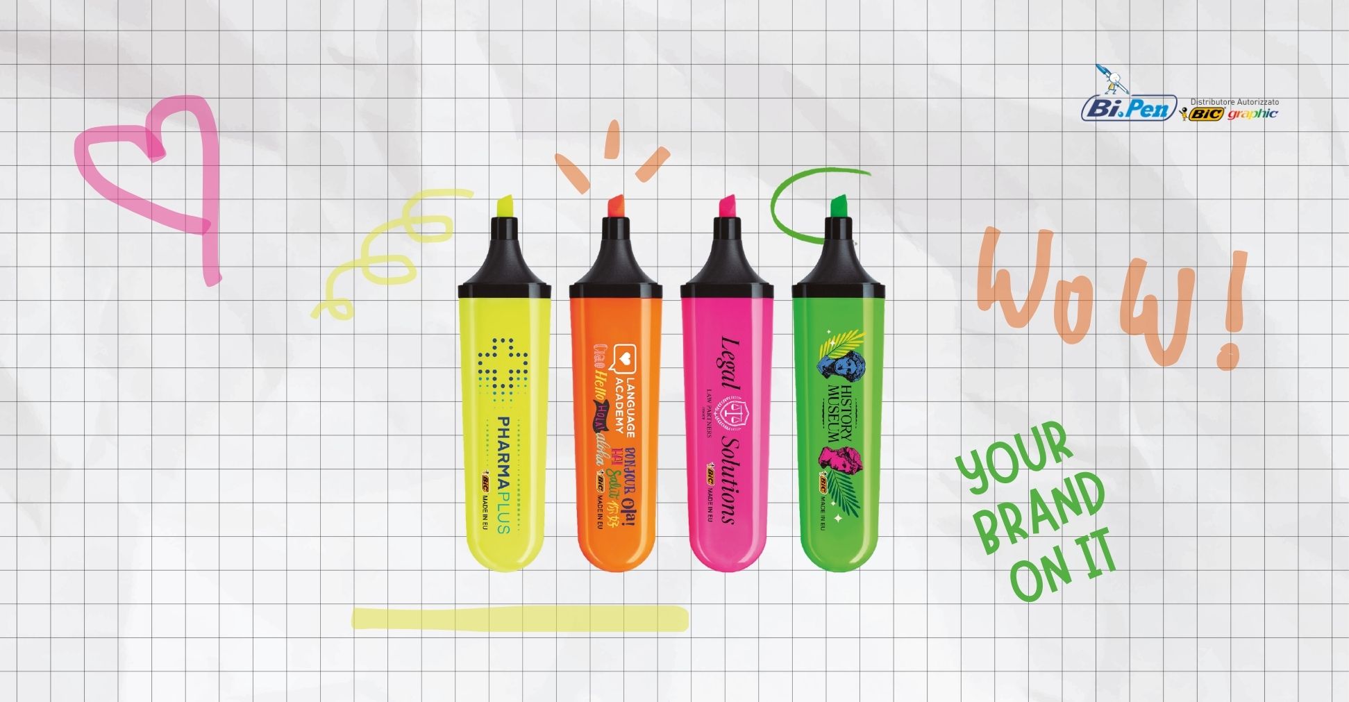 Personalizza il tuo evidenziatore promozionale caricando il logo direttamente online.